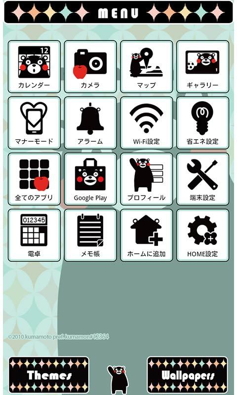 - かわいい「くまモン」だらけのホーム画面が作れる