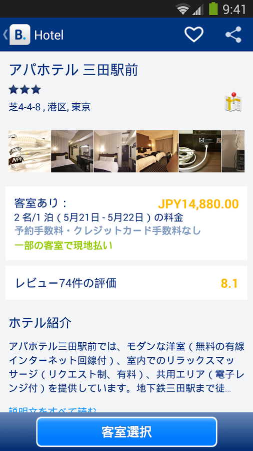 世界各国・43万軒以上のホテルを掲載するBooking.comの無料アプリをインストールすれば、Androidやタブレットでも簡単・安全に予約することができます。ホテルに限らず旅館、温泉宿、ゲストハウス、ホステルなど、さまざまな宿泊施設を掲載、いつでもどこでもぴったりの一軒が見つかります。